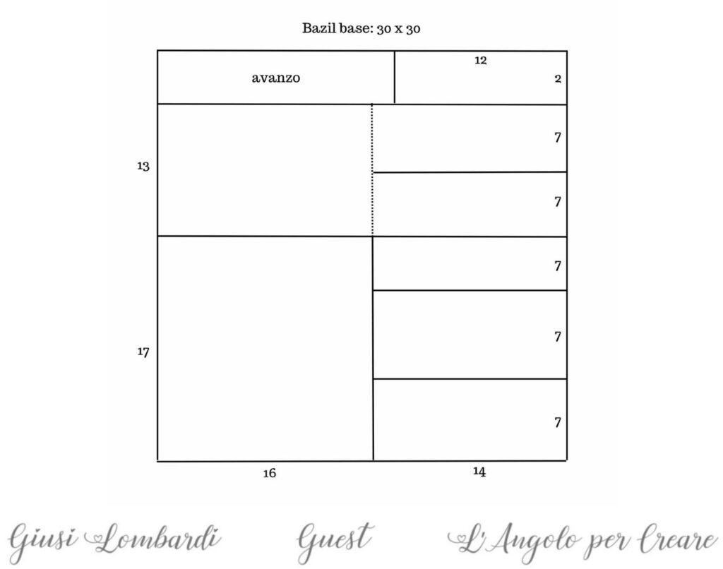Tagliamo 12 quadrati 6,5×6,5cm, dalle altre patterned, che ci serviranno per rivestire le pagine della nostra card ricavate dai 4 rettangoli piegati a metà.