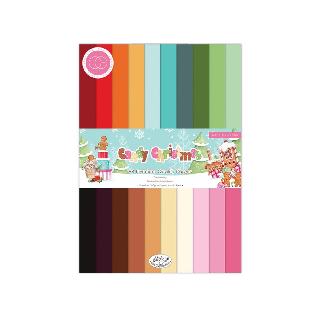 Il paper pad di Craft Consortium A4 si coordina con la collezione "Candy Christmas" ed è un blocco con fogli tutti a tinta unita.