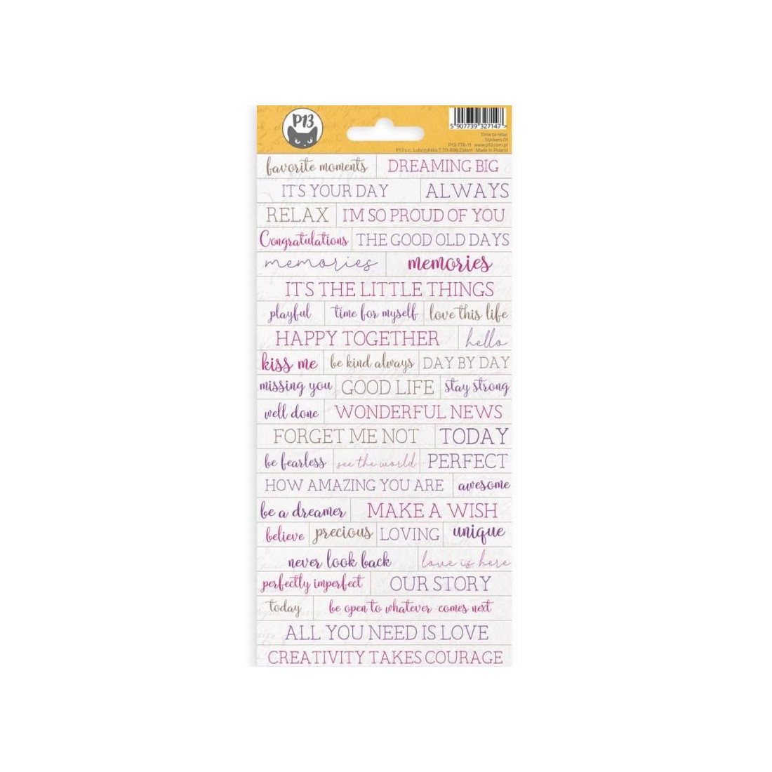 Gli stickers sheet di P13 sono degli adesivi pretagliati con stampe di scritte in font non uguali. Sono in coordinato con la collezione Time to Relax.