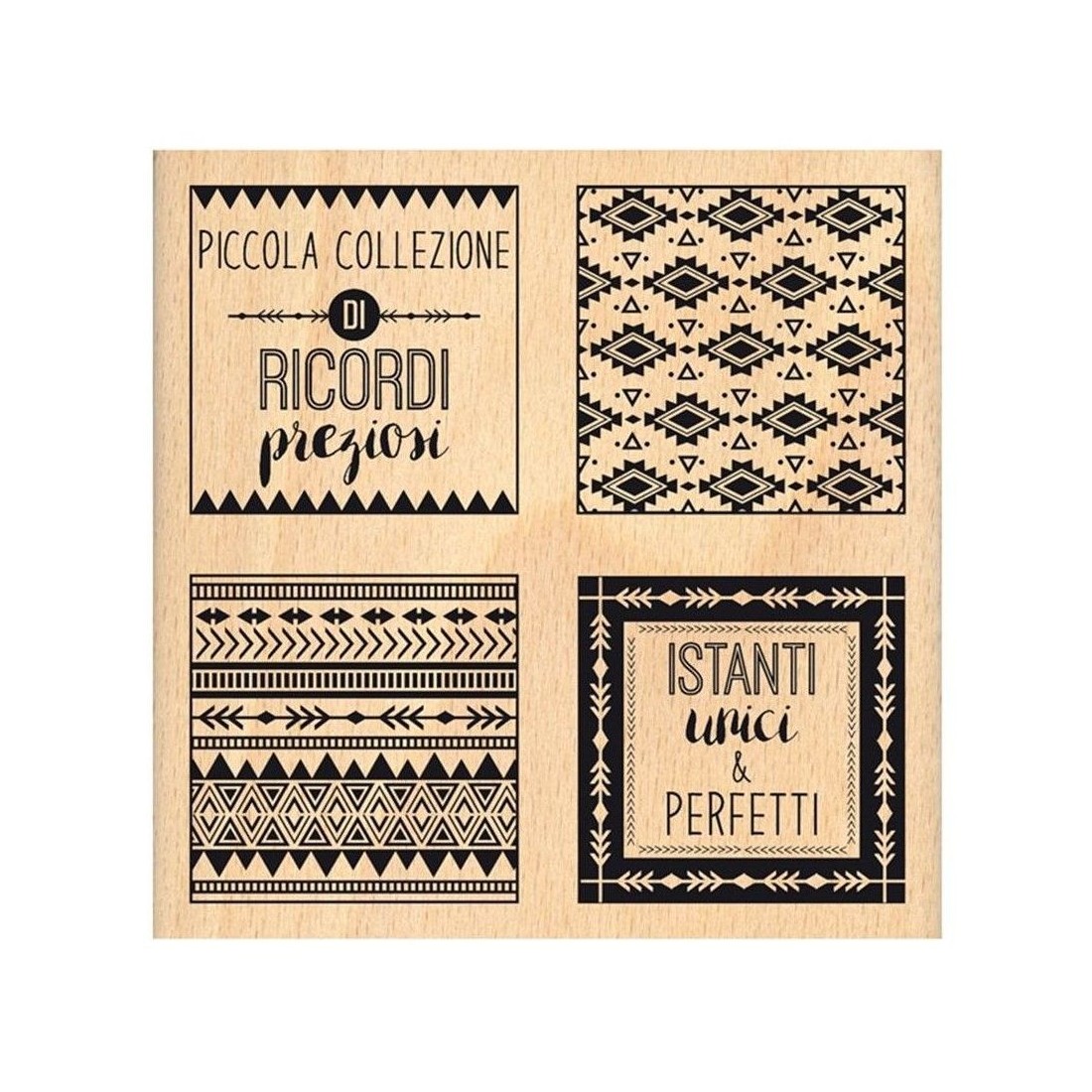 Il timbro in gomma – Collezione di Ricordi – è montato su un blocco in legno per cui non necessita del blocco in acrilico per essere usato. Basterà inchiostrare e timbrare! Il timbro ha dei “sentiments” frasi tutte in italiano con cui potrai personalizzare le tue creazioni scrap. Si adatta benissimo a creazioni di album fotografici, cards e biglietti augurali ed è perfetto per valorizzare i tuoi ricordi speciali. Pulire subito dopo l’uso il timbro con un detergente Dimensione del blocco cm 10x10